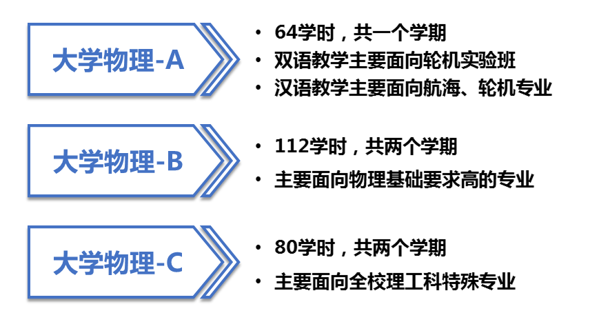 大学物理课程面向全校理、工科各专业,实施多层次教学计划,包括3门课程类别: