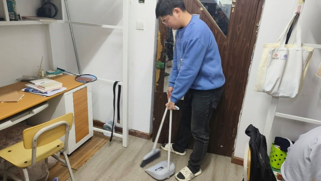 学生们在寝室及楼道内积极开展清洁活动,全体学生分工有序,各司其职。学生们严格遵守疫情防控期间学校各项规章制度,对寝室内日常使用物品进行消毒,并开窗通风。部分学生互帮互助,共同清洁寝室玻璃及较高处卫生死角,展现了寝室内互帮互助的良好风貌。活动最后,中队干部检查各寝室是否存在使用违规电器的情况,并对各区域卫生情况进行全面检查,指出不足之处并督促学生进行二次清洁。还要求学生不得在寝室使用大功率违规电器,提醒学生定期打扫寝室卫生,共同营造良好的生活环境。