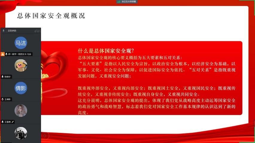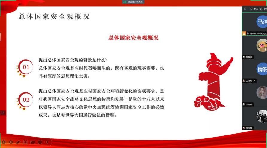 各位同学在会后纷纷表示要把组织学习收看国家安全教育课与深入学习国家安全知识结合起来,国家安全和每个人的生活息息相关,唯有国家安全了,人民才会有更好的生活。国防是国家安全的有力保障,作为学生此刻的主要任务是学好科学文化知识,增强国防观念。有了丰富的知识,才能够制造出世界上一流的武器装备,更好地保护国家不受侵害更好地维护世界和平。