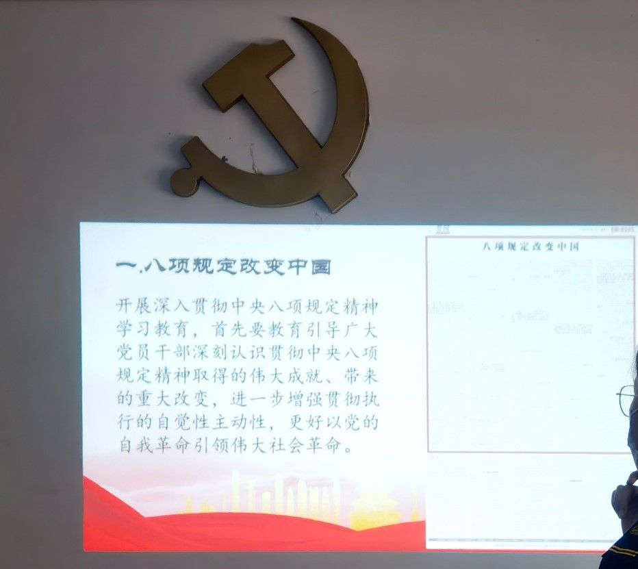 会议指出开展深入贯彻中央八项规定精神学习教育,首先要教育引导广大党员干部深刻认识贯彻中央八项规定精神取得的伟大成就、带来的重大改变,进一步增强贯彻执行的自觉性主动性,更好以党的自我革命引领伟大社会革命。支部成员深入学习领会习近平总书记关于加强党的作风建设的重要论述及落实中央八项规定及其实施细则精神,总结学习深入贯彻中央八项规定精神的成效和经验,深刻领会提高思想认识,增强行动自觉,把握学习教育的目标任务,通过主题学习切实推进支部党风廉政建设,全面推进党的自我净化、自我完善、自我革新、自我提高。