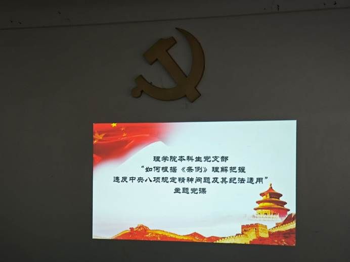 为持续加固中央八项规定精神堤坝,深入推进作风建设常态化长效,5月28日中午12点10分,3044am永利集团3044noc本科生党支部组织开展“如何根据《条例》理解把握违反中央八项规定精神问题及其纪法适用”主题党课。本次党课由支部书记李安诺主持,全体党员及部分积极分子参加学习。