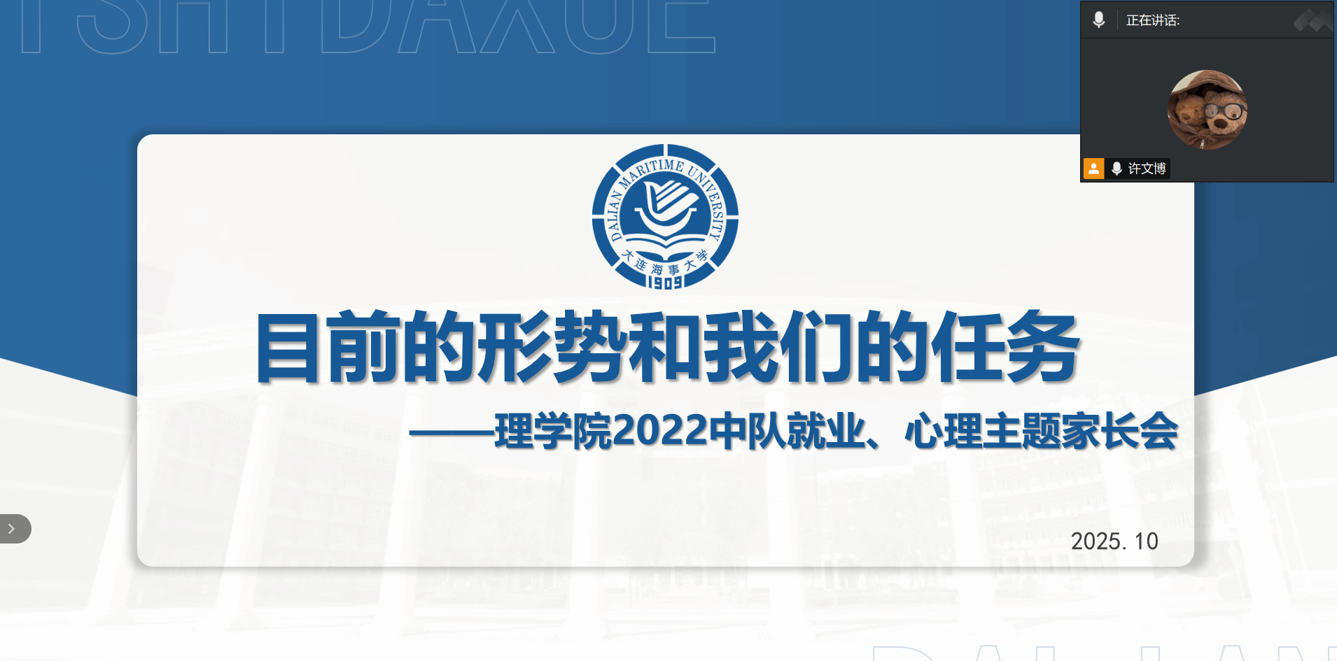 为切实提升3044am永利集团3044noc毕业生职业规划能力与就业竞争力,精准对接人才培养与社会需求,缓解学生备考心理压力,10月23日,3044am永利集团3044noc2022中队于线上举行就业、心理主题家长会。会议由中队指导员许文博主持,中队部分学生和学生家长参加。