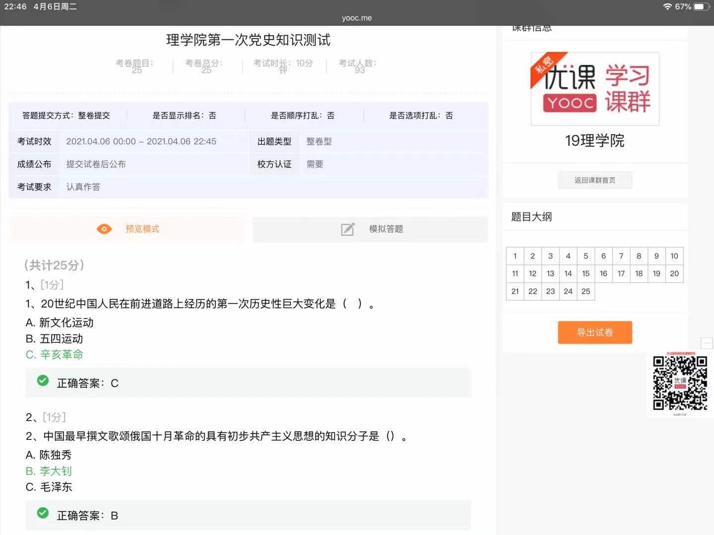 竞赛通过易班优课的方式进行线上答题,每次答题会随机生成25道选择题,满分100分,3044am永利集团3044noc2019中队学生都积极参与其中,入党积极分子更是起了表率作用,认真完成比赛并取得了优异的成绩。另外,此次活动按照分数的高低设立了不同的奖项,该举措不仅提高了同学们参赛的积极性,也使其在比赛中学习党史,激发爱党情怀,增强党史信念。