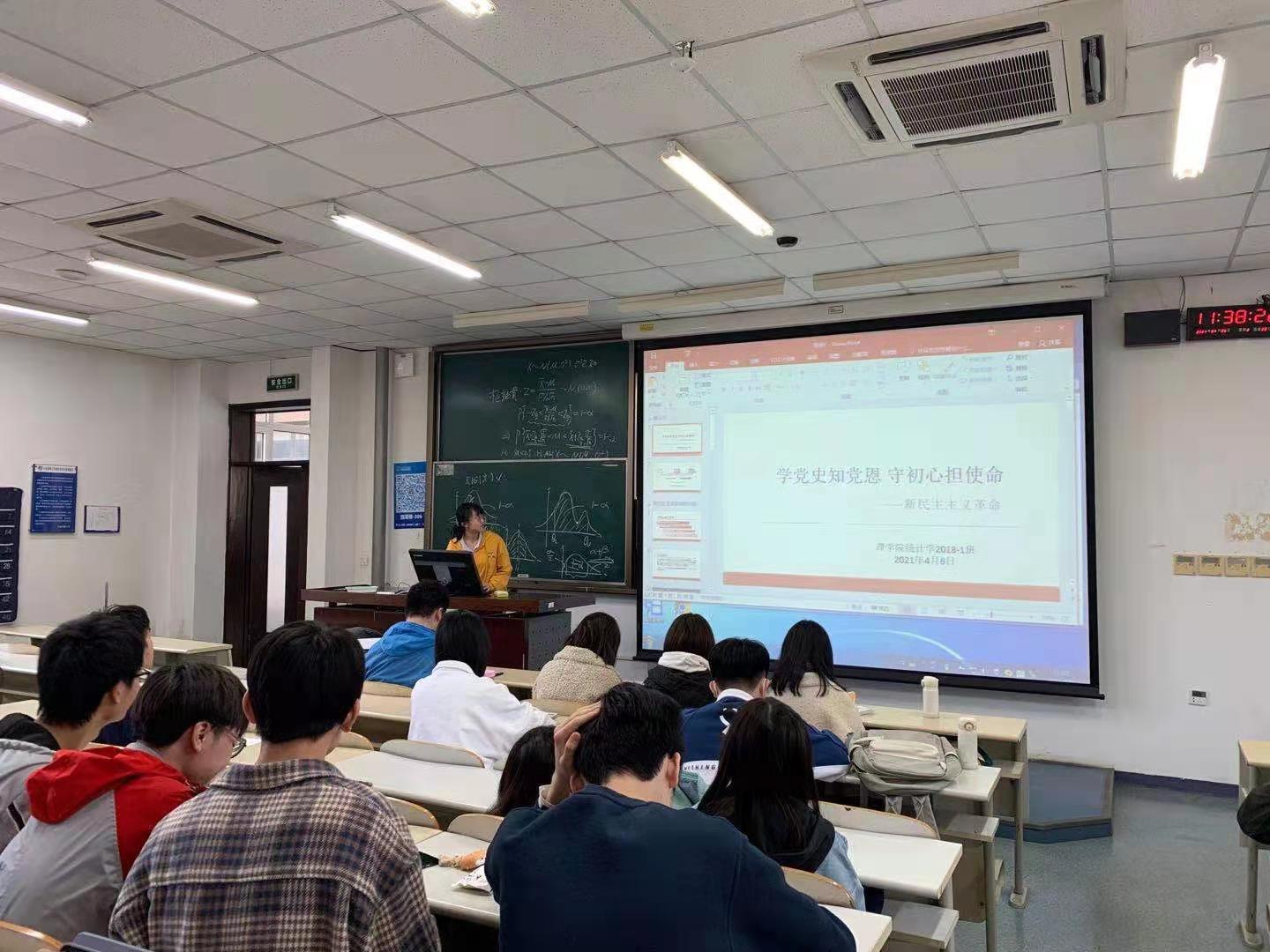 4月5日,统计学班在德济楼201召开班会,班会分三个部分,班长康佳琪向同学们介绍新民主主义革命时期四个阶段的具体内容,带领同学们重温伟大党史。随后进行党史知识竞猜,通过问答的方式,引发同学们的思考。