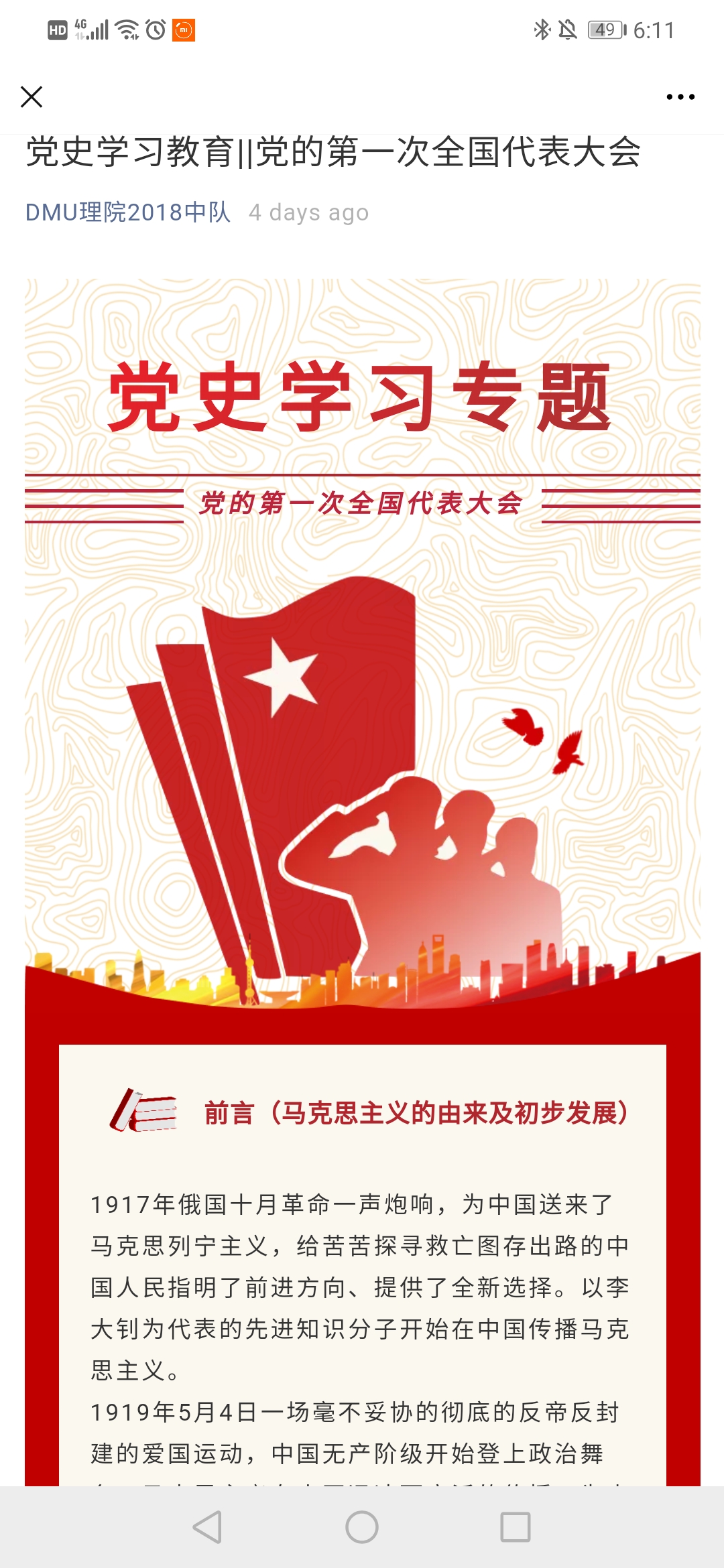 活动中,各班团支书们以及入党积极分子收集党的历次代表大会相关资料,以推送的形式将新民主主义革命史,党的发展史、党对国家的贡献传递到每一位同学。指导员李安诺指出,开展这样形式的党史学习教育专栏,不仅能让同学们明白中国共产党带领中国人民取得新民主主义革命胜利的不易,更能让同学们明白中国从站起来到富起来再到强起来的过程中党的伟大贡献。