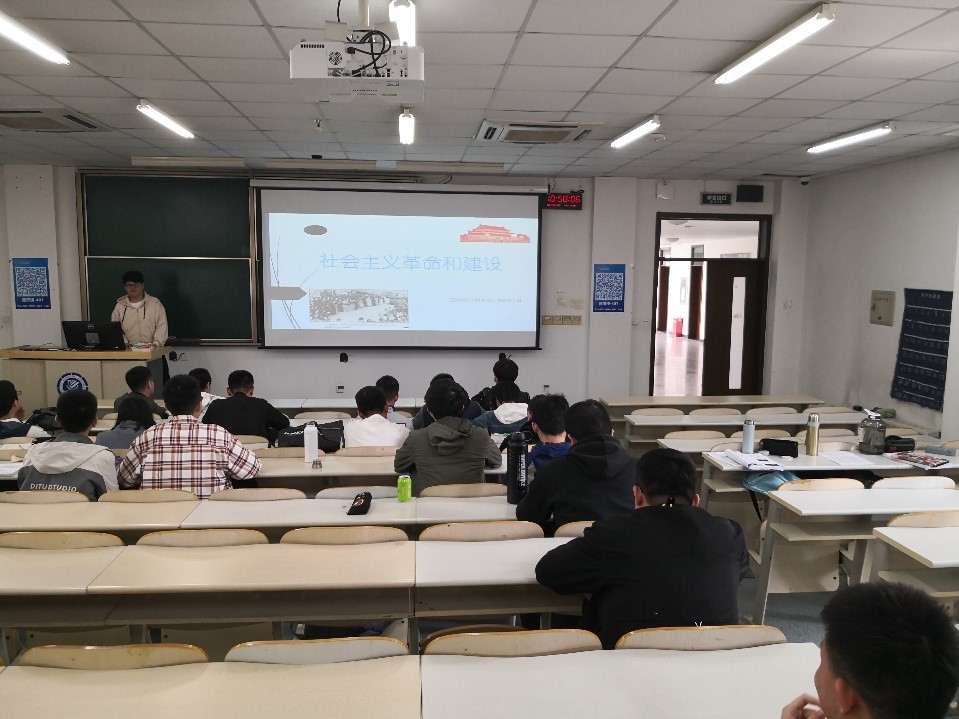 4月16日,统计学一班在四海楼505召开班会,通过观看视频,梳理了社会主义革命和建设时期各个活动的时间线。班长康佳琪介绍了土地改革运动和抗美援朝的历史过程,随后开展了小组讨论。积极分子黄耀伟总结说:“社会主义革命和建设为中国富强、人民生活富裕奠定了基础,增强了我国综合国力,三大改造的完成,标志着社会主义制度在我国的确立。”