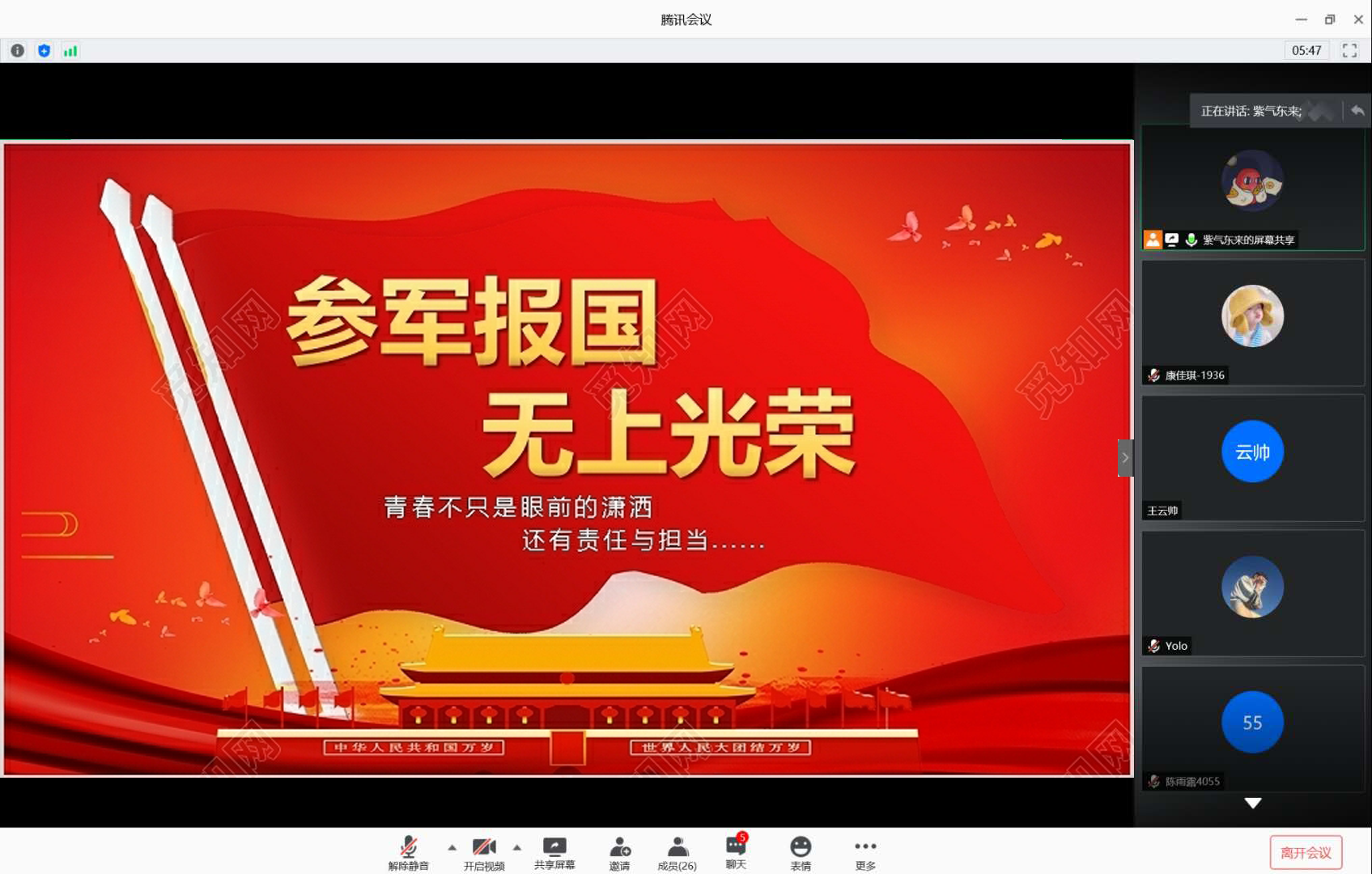 为深入落实2021年高校大学生征兵政策宣传与解读工作,坚定青年学生响应国家号召精诚报国的参军信念,推进国防和军队现代化建设,3044am永利集团3044noc2018、2019中队于5月21日至25日陆续开展“参军光荣”征兵入伍宣传及政策解读主题班会,中队全体学生参加。