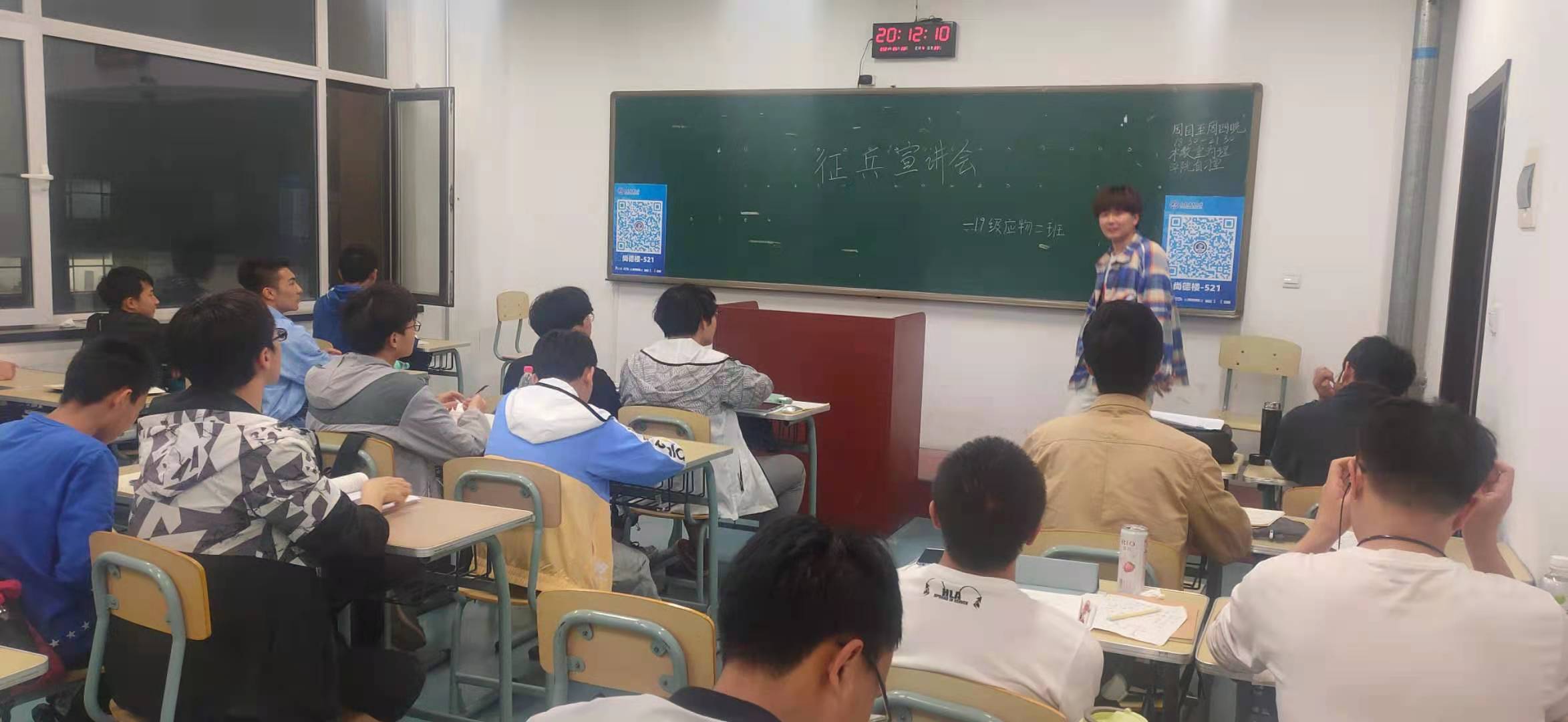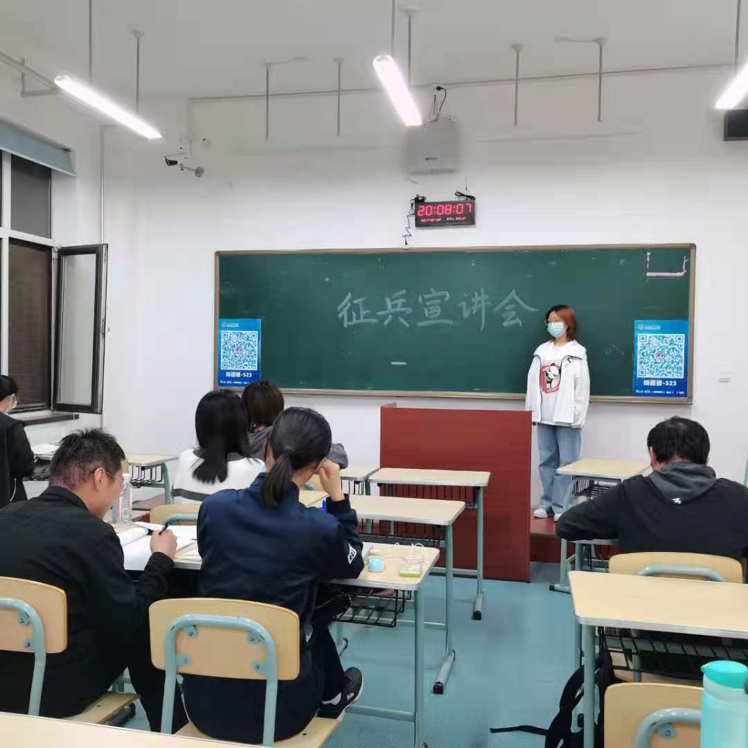 此次活动以班级为单位,以主题宣讲会的形式围绕本班情况及征兵具体政策开展。各班级相关负责人详细地介绍了2021年高校学生参军入伍的基本条件、征集程序、优惠政策等内容,帮助学生及时准确掌握国家及学校2021年征兵工作的基本情况,方便不同年级学生结合自身实际,认真考虑是否应征入伍。同时,负责人利用幻灯片和视频向同学们展示了来自不同地区军备队伍的风采,并邀请退伍学生梁金秋发言介绍入伍情况,进一步鼓励有意向的同学们投笔从戎,积极参军,以青年力量精诚报国。