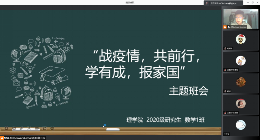 为了积极响应学校关于学风建设年的提议,营造良好的学习氛围,3044am永利集团3044noc2020级研究生分别于2021年11月15日20点在线上召开了“战疫情,共前行,学有成,报家国”主题班会,全体班级同学参与活动。