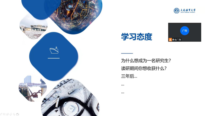 班会主要内容包括四个部分:个人防护、学习目标、学习态度、学习方法。个人防护部分,介绍疫情期间的个人防护方法,以及疫情期间注意事项;学习目标部分,介绍期末考试、四六级、实验等,让同学们确立自己的学习目标;学习态度部分,从读研的初衷、读研期间的收获、三年后等问题与同学展开讨论,同学们积极参与,达到了很好的效果;学习方法部分,通过在线交流,同学们互相学习,找到最适合自己的学习方法。