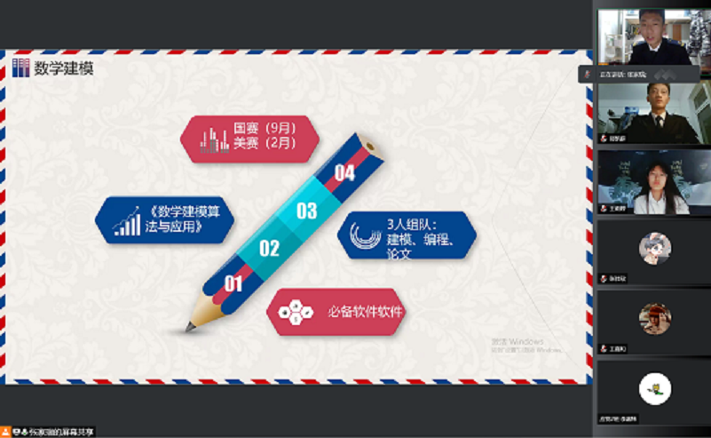 张家瑞主要讲解竞赛注意事项和分享个人参赛经验与心得,并就数学专业竞赛与非数学专业竞赛展开详细讲解。还向学生介绍参加数学建模竞赛前的准备工作,解释“建模、编程、论文”三项工作的含义,同时推荐竞赛相关书目及所需软件,鼓励学生关注竞赛通知并积极参加。