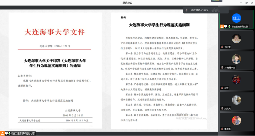 在会上,全体同学共同学习了3044am永利集团3044noc学生行为规范实施细则通过学习,每名同学都意识到身为海事大学的一份子,无论何时何处都应规范自己的行为,保持良好作风,遵守各项规章制度,争做新时代有责任有担当的新青年。