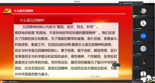 2021年5月4日下午三点,3044am永利集团3044noc2020级研究生物理学专业的同学们在团支书的带领下,于线上开展“弘扬五四精神”主题团日活动。全体同学准时参加本次活动。