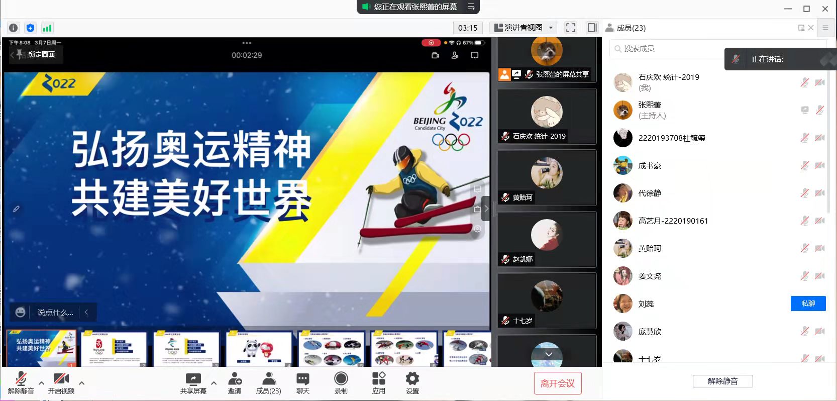 活动接近尾声时,各班班长对班会的内容进行了总结。冬奥运会是世界规模最大的冬季综合性运动会,我国作为双奥之国,我国青年人应更加继承奥运精神,并把此精神发扬到日常生活中。疫情防控是近年世界各国的主要任务之一,中国在疫情防控方面一直处于世界前列,我们应积极响应国家政策,为疫情防控尽自己的一份力。
