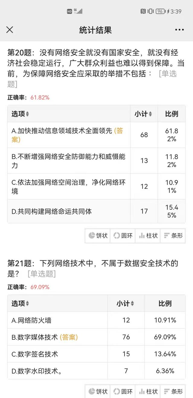 此次竞赛的内容涵盖了网络安全、网络诈骗、网络犯罪等多方面的知识,本次竞赛以选择题为主,指导员将试题通过问卷星小程序发布在微信群中,以方便同学们作答。同学们综合知识基础都比较牢固,对于网络信息安全知识的掌握也较全面。同学们都认真作答,争分夺秒,一个小时二十分钟后,竞赛落下帷幕。最终,来自应物一班的明晓茏同学获得冠军,蔡伟康获得亚军,黄舒琪获得季军。
