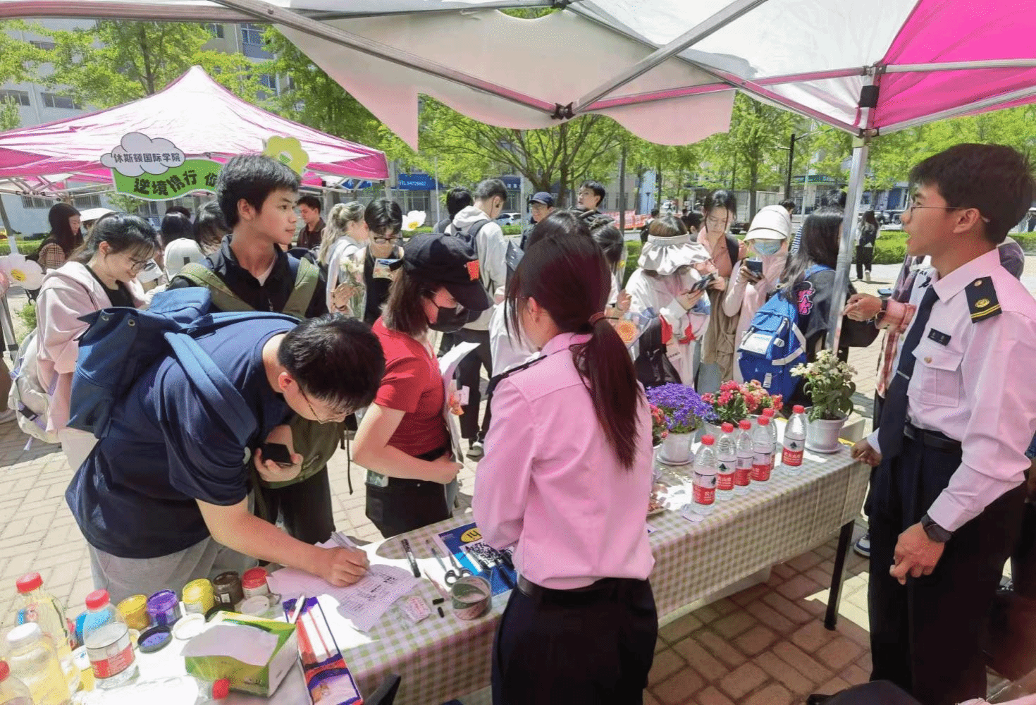 海大学生们认真答题,悉心挑选绿植,询问如何照顾绿植,并承诺要认真呵护。小小的绿植为大学生活增添了一份色彩,也为大家带来了欢乐。希望在养护花草的过程中海大学生可以更好的疗愈自我,放松身心,感悟生命的力量。
