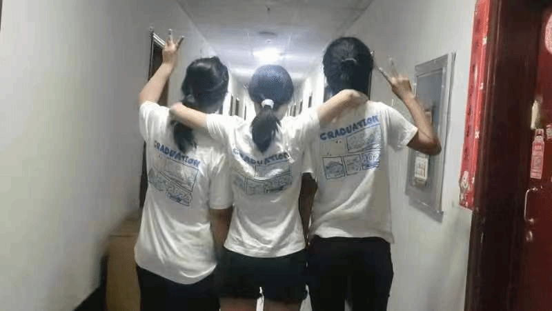 拍摄现场,暖场活动“墨西哥人浪”将活动再一次推向高潮,同学们的欢呼声久久回荡耳畔。身穿自主设计的文化衫的毕业生们对着镜头,或三五成群微笑合影,或对着镜头高喊“毕业快乐”。
