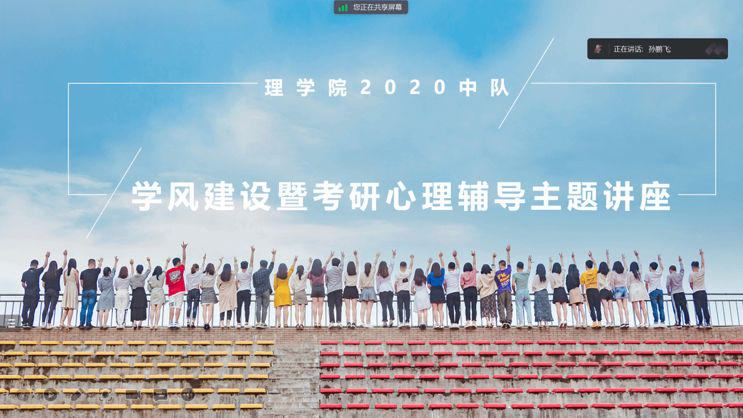 为减轻考研学生的备考压力,缓解紧张情绪,使同学们在考研最后阶段保持良好心态,从容应对考试,同时健全校友联络机制,发挥校友传帮带作用,8月21日,指导员许文博邀请2018级校友孙鹏飞、康钰浩和吴文平为2020级考研学生带来考研心理辅导主题讲座,许文博主持活动。