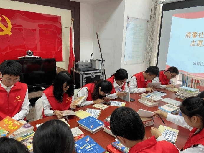 最后,支部成员返回社区居委会,参与社区图书编号登记与排序归整志愿活动,经过全体成员的高效工作,成功帮助社区工作人员完成图书整理。