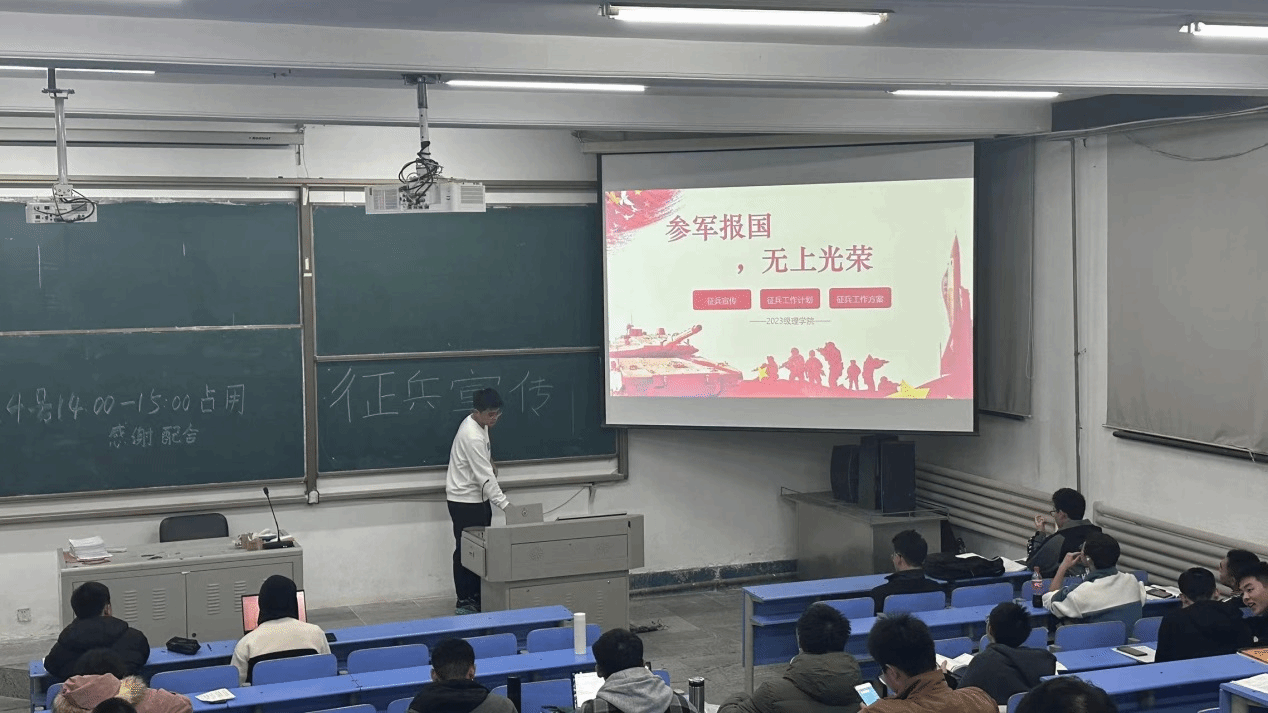中队组织委员袁航同学向同学们介绍了征兵的意义,入伍条件和报名基本流程。强调入伍可以培养青年人的意志力、纪律性和责任感,提高综合素质和领导能力,更好地适应社会生活,增强自信心和自尊心。会议帮助同学们充分了解国家征兵入伍政策,成功调动同学们应征的积极性。