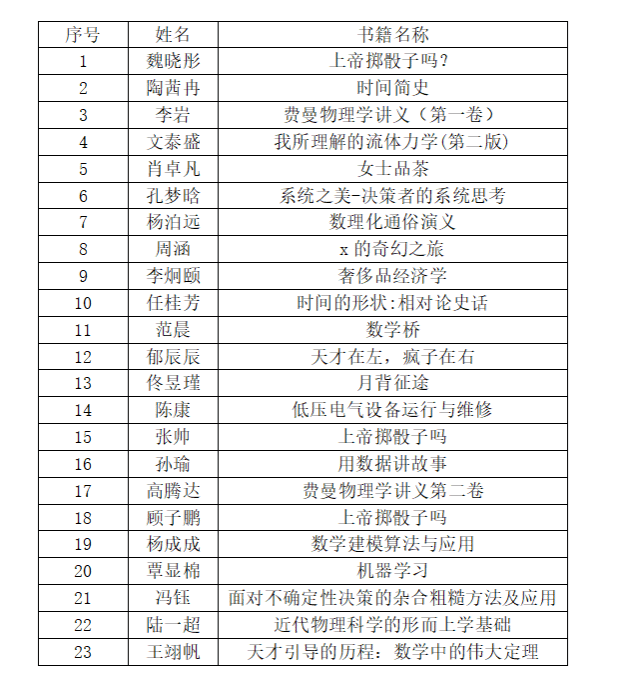 以下是参加活动并成功打卡学生的阅读书目: