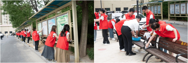 随后,全体研究生携手社区工作人员一起开展了志愿服务活动,一起擦拭户外宣传栏、社区公共设施、清扫路面垃圾。