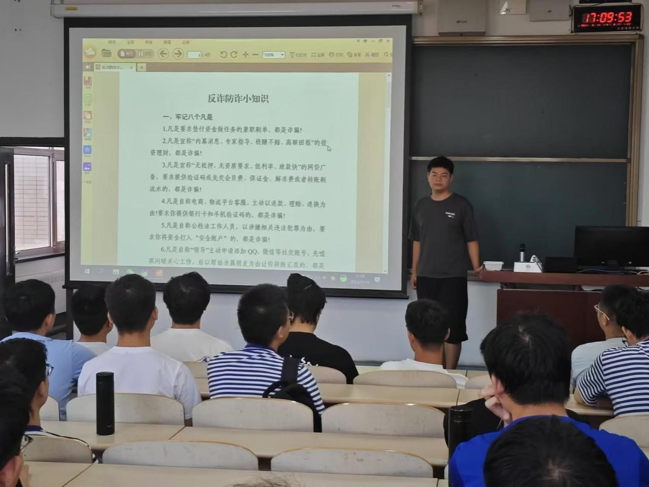 班长重点强调诈骗的多样性和隐蔽性,提醒同学们保持警惕,不轻信陌生来电和信息,不随意透露个人信息。班长鼓励学生们积极学习反诈知识,提高自我保护意识,遇到可疑情况时及时与老师或警方联系。