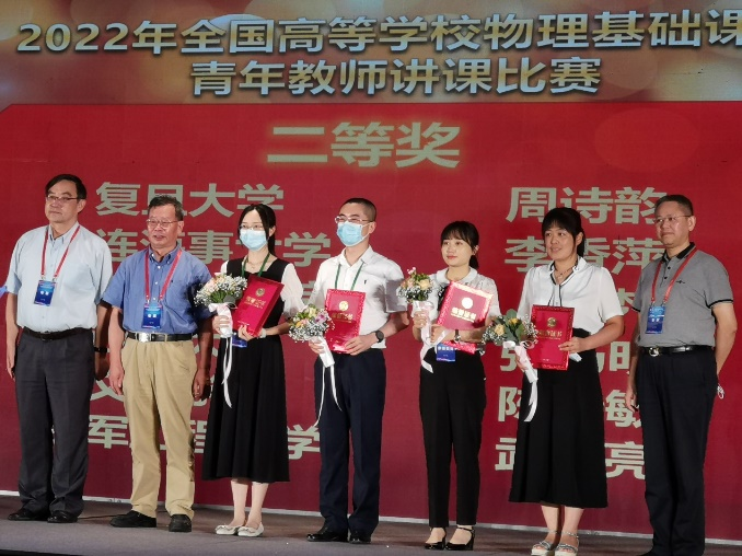 本次比赛由中国物理学会物理教学委员会、教育部高等学校大学物理课程教学指导委员会主办,东北师范大学承办。该赛事包括理论课和实验课两个比赛类别,隔年交替进行。本次赛事为大学物理实验课讲课比赛,包括讲课和提问两部分。经过省级初赛和地区复赛的激烈角逐,共有来自全国各省区的21名青年教师入围全国决赛。全国决赛分为两轮,第一轮为分组淘汰赛,每组成绩排名靠前的选手进入第二轮的一等奖争夺赛。李香萍老师在决赛第一轮和第二轮分别抽中了“示波器的使用”和“用拉伸法测钢丝的杨氏模量”两个实验,最终获得二等奖。