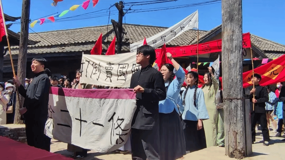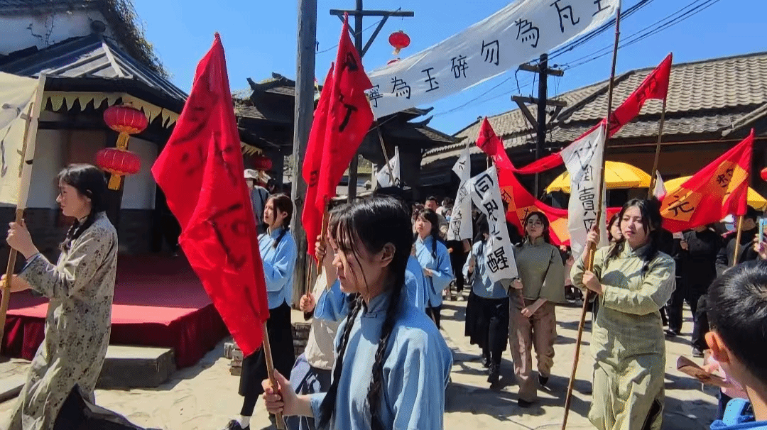 通过参观闯关东影视基地中的各个展馆,同学们身临其境的感受了上世纪四五十年代的真实生活。在参观过程中,同学们沉浸式体验了五四学生游行运动,切实体验到了1919年五四运动时学生们的伟大爱国精神。除此之外,同学们还观看了关东先生论三国评书、关东大秧歌、国风音乐会、京韵大鼓、清风有戏之关东往事等表演。