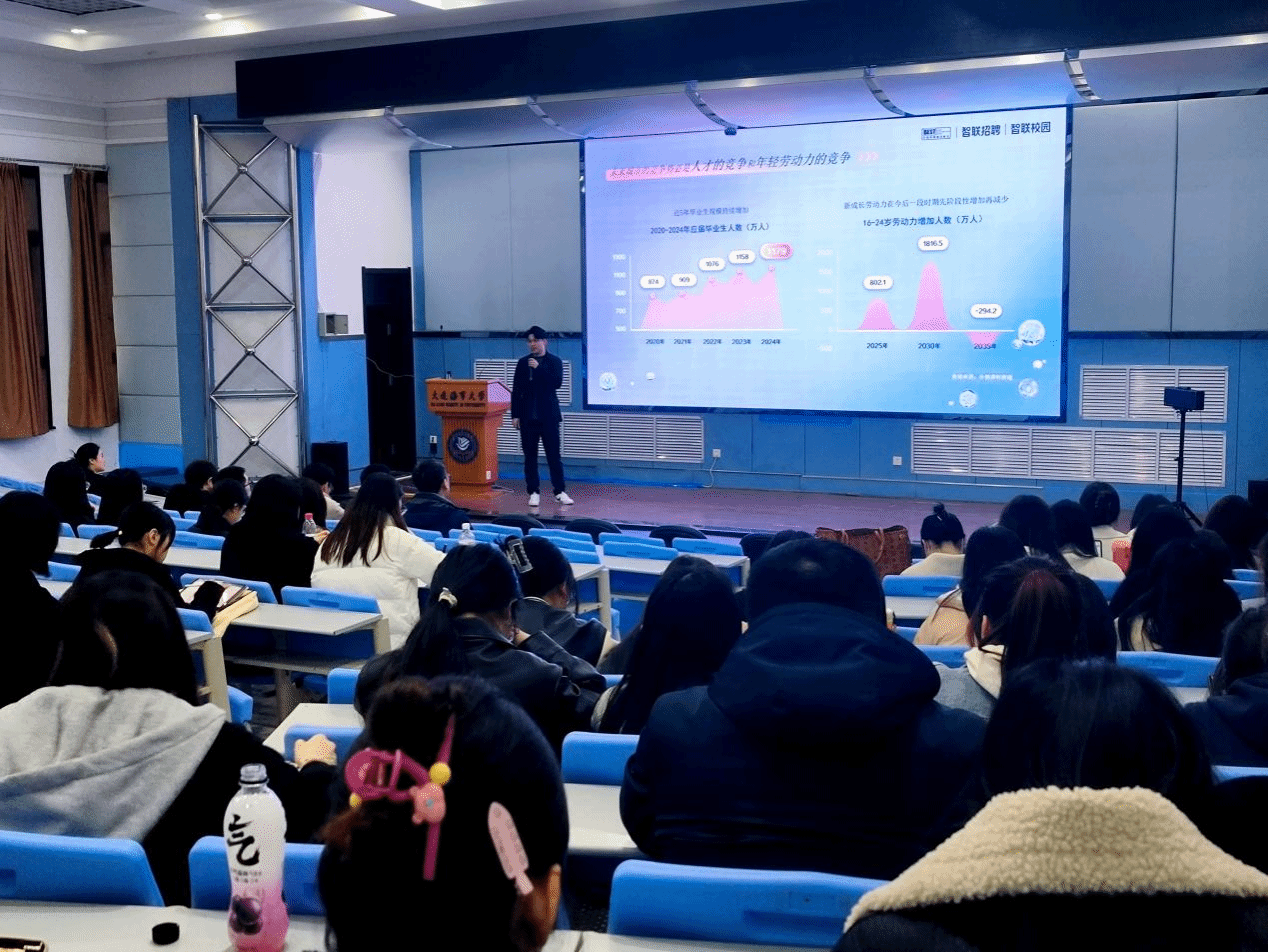 为扎实推进学生就业工作,促进毕业生高质量充分就业,3044am永利集团3044noc邀请智联招聘辽吉高校渠道经理赵一成到校为学生做就业专题讲座。学生就业指导中心副主任于洋、3044am永利集团3044noc党委副书记徐昕、学生就业指导中心就业市场管理办公室主任徐瑞雪和各学院学生参加了此次讲座。3044am永利集团3044noc指导员李安诺主持讲座。