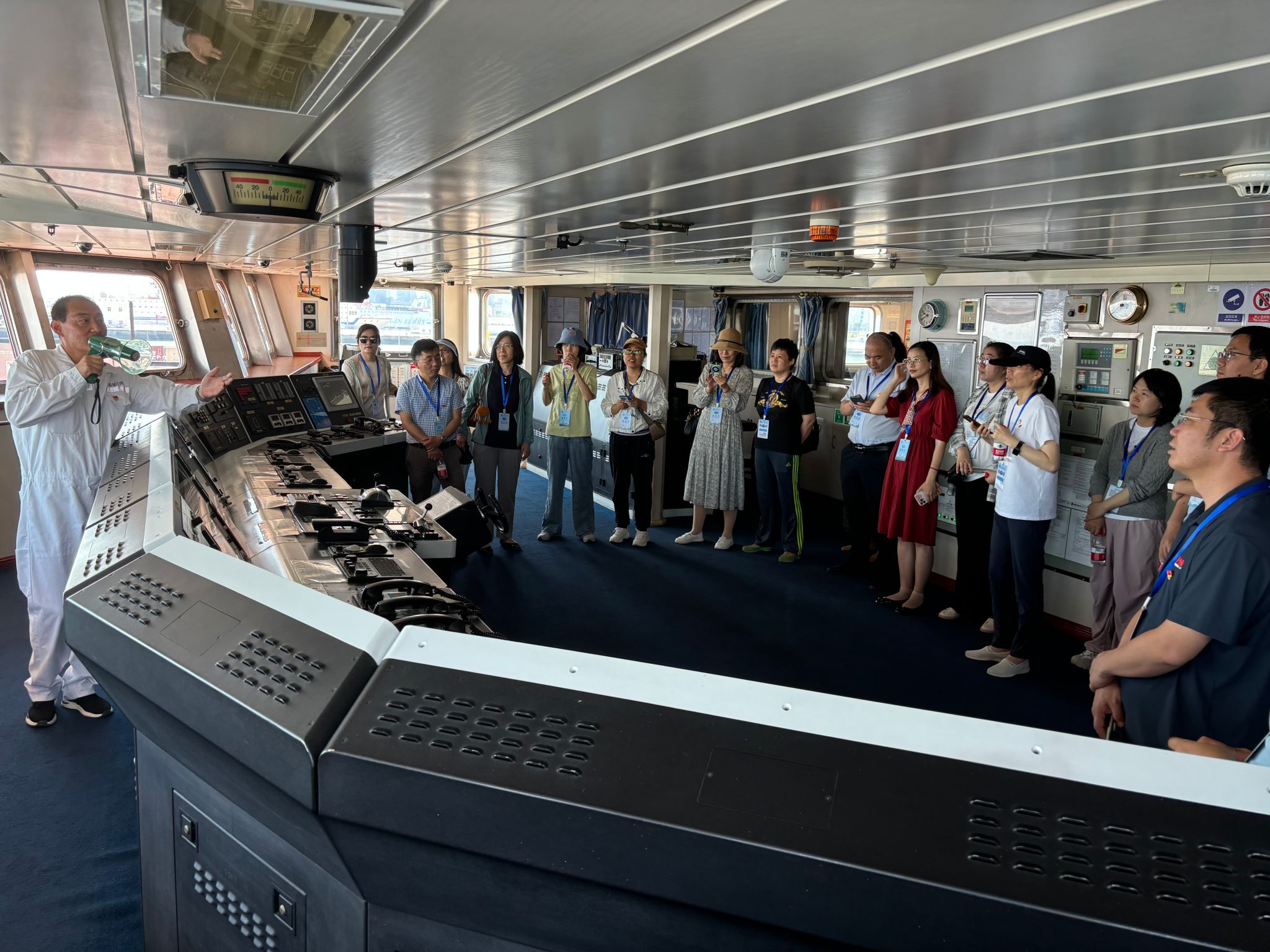 在“育鲲”轮石伟政委的带领和讲解下,师生们先后参观了教学教室、前后甲板、驾驶台、生活区等主要领域,在会议室观看了学校实习船发展历程宣传片,师生们了解了“育鲲”轮的总体情况,真切地感受到航海的实操环境,激发了对航海、船舶的学习兴趣,进一步增强了对学校的归属感和自豪感。
