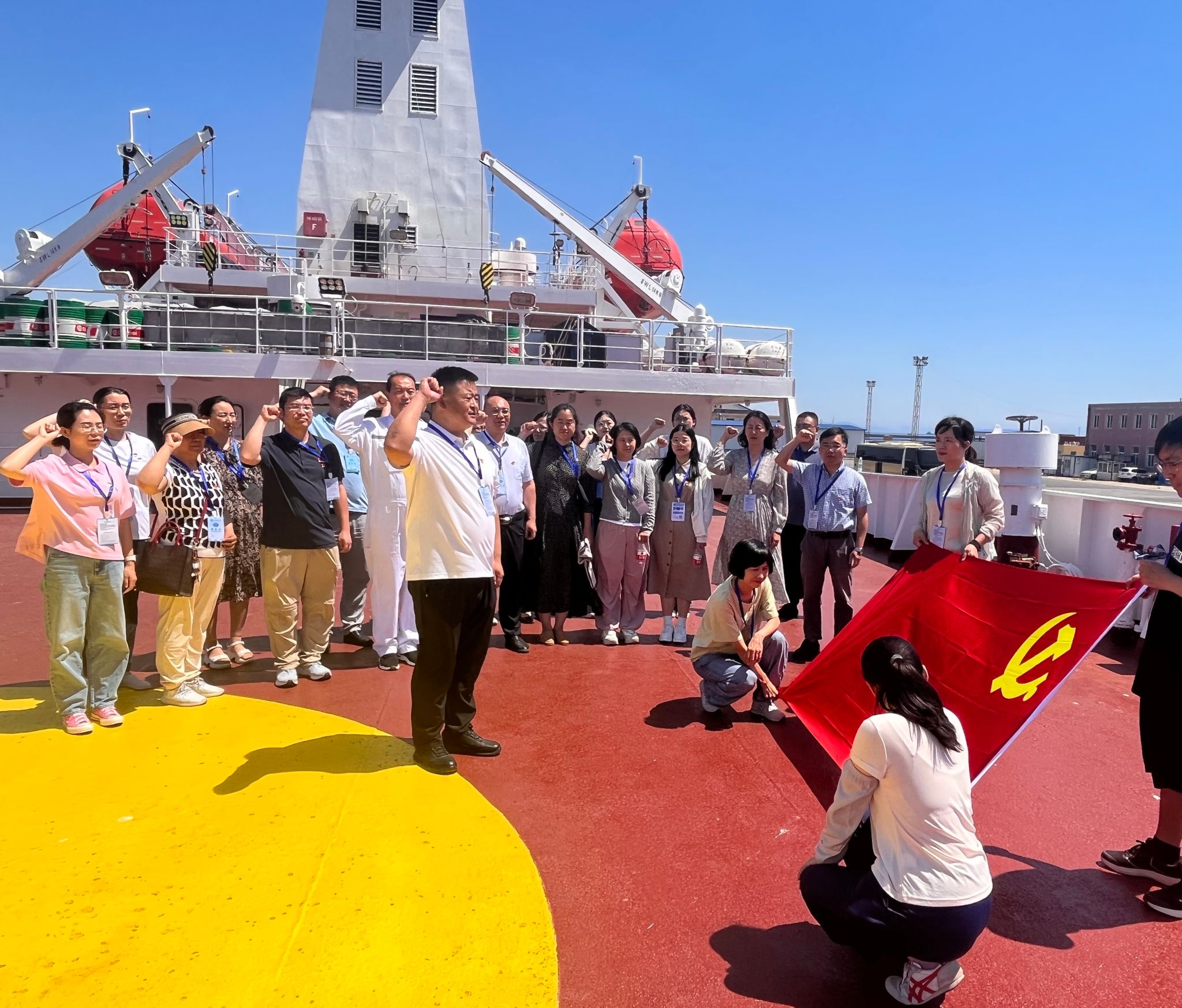 在后甲板举行了重温入党誓词活动,铿锵的誓词不仅是对过去的回顾,更是对未来的承诺,激励党员同志在实际工作中发挥先锋模范作用,积极投身于党的事业。