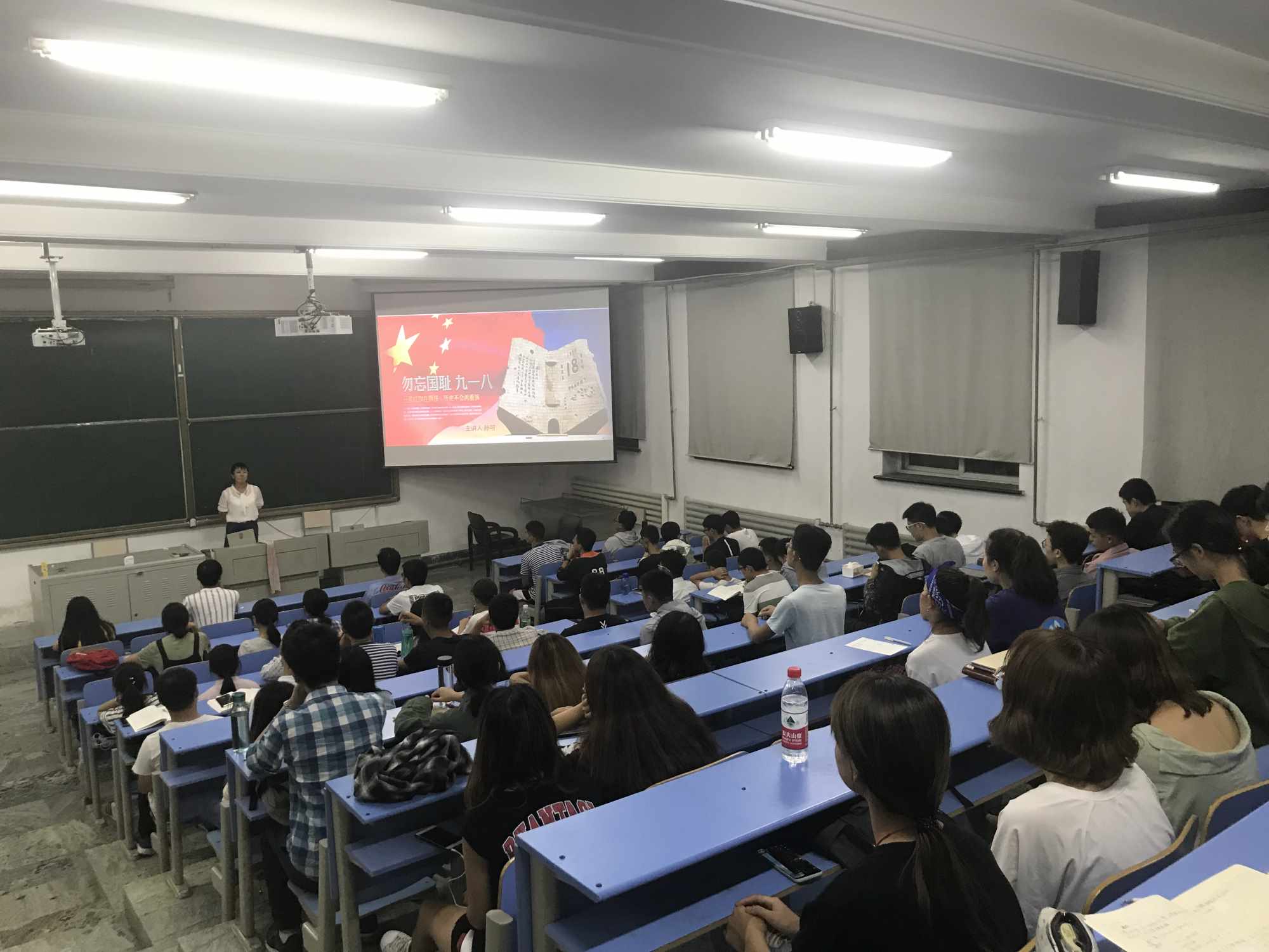 首先孙可从“九一八”事变讲起,一一列述了日军在中国犯下的滔天罪行,给中国人民带来前所未有的灾难。讲述了抗日英雄杨靖宇孤身一人战斗几昼夜壮烈牺牲,赵一曼同志英勇就义,王凤阁司令殊死斗争的悲壮事迹。随后介绍了如今充满生机、充满希望的中国,呼吁学生要时刻记住身后强盛的国家。最后,战世勋提倡学生要牢记历史,并不是延续仇恨,而是要以史为鉴、面向未来。