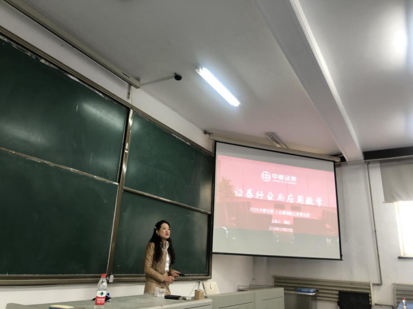 中泰证券公司营业部梁欣经理从股票说起,为同学们展现了金融证券行业整体情况及中泰证券对于数学人才的渴求。梁经理特别提到,金融行业研发团队离不开数学人才,这是相关企业拥有核心竞争力的关键,因此只要基本功扎实,基础学科专业的学生前途不可限量。
