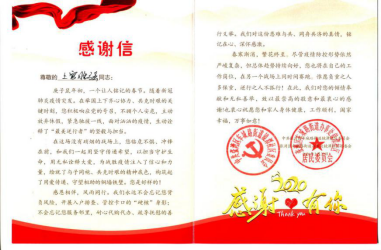在包括上官胜强在内的防控一线工作人员的共同努力下,小区居民的安全健康得到了保障,至今未发现疑似、确诊病例。其本人也收到了中共张湾区车城路街道镜潭社区委员会和镜潭社区居民委员会的感谢信。