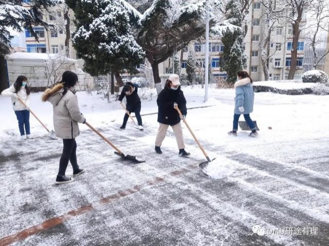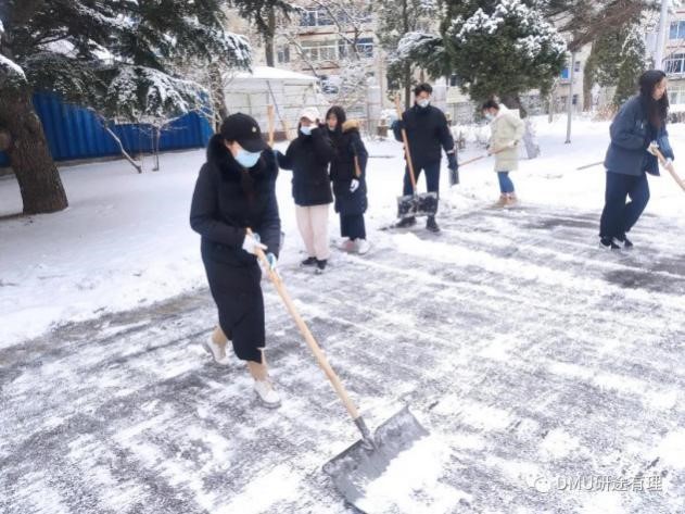 经历了降雪的大连,是格外的寒冷,学生党员们仍然拥有着高度的热情。雪景虽美,安全第一,保障道路的通畅,为师生服务成了大家共同的奋斗目标。在寒冷的雪天中,大家密切配合有序地忙碌着。经过一中午与寒风的奋战,与冬雪的斗争,党员们的以最快的速度将积雪清理干净,给师生在寒冷的冬日中铺就了一条安全温暖道路。