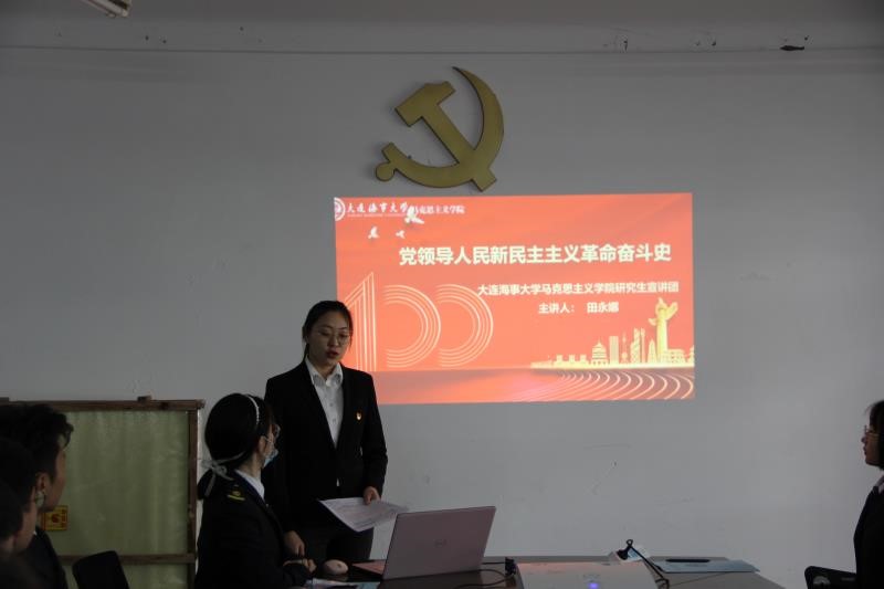 接着,田永娜为学生进行了党领导人民新民主主义革命奋斗史的宣讲,宣讲从“红船曙光”、“革命洪流”、“星火燎原”、“抗日救亡”、“决战胜利”五个部分为学生深入讲解了新民主主义革命奋斗史的艰辛历程,