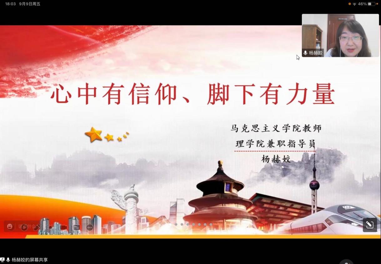 杨赫姣从“什么是中国共产党、为什么要加入中国共产党、加入中国共产党需要做什么”三个方面对新生进行了讲解。她鼓励同学们要树立共产主义远大理想,坚定中国特色社会主义信念。通过对马克思主义理论、习近平新时代中国特色社会主义思想、党的路线方针政策等理论知识的学习,不断深化对党的认识。她希望同学们大学期间严格要求自己,踊跃递交入党申请书,尽快从思想上、行动上向党组织靠拢,争取早日成为一名光荣的中国共产党党员。