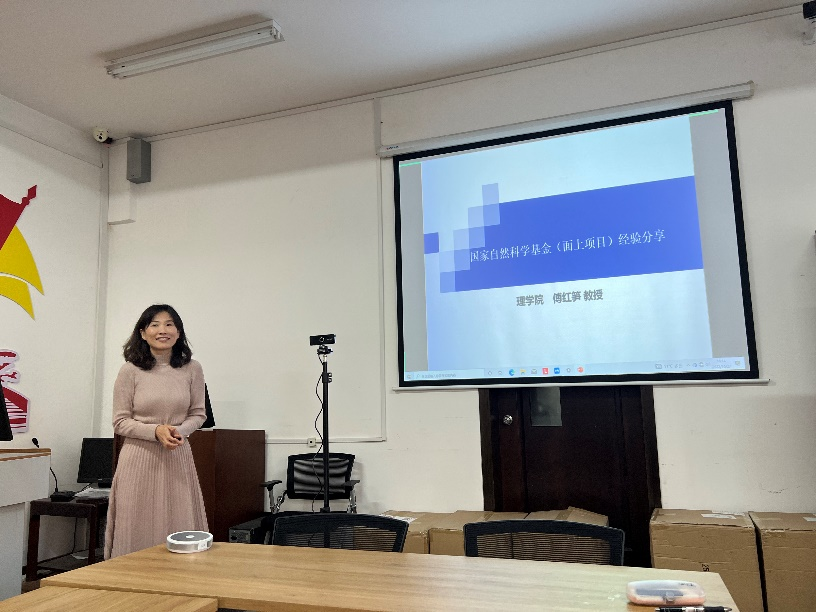 傅红笋教授与青年教师分享了国家自然科学基金面上项目申请的经验,就基金申请书撰写部分的细节方面给予详细指导,并在科学属性问题方面与青年教师们深入探讨。此外,她向青年教师们传达了自己的人生信条“认真改变自己,坚持改变命运”,以及严谨务实的科研态度,反响热烈。